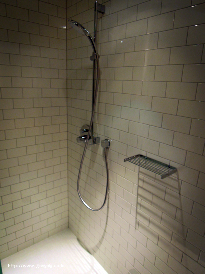 욕실은 미닫이 방식으로 문을 열고 들어가면 샤워부스가 있는 형태였다.