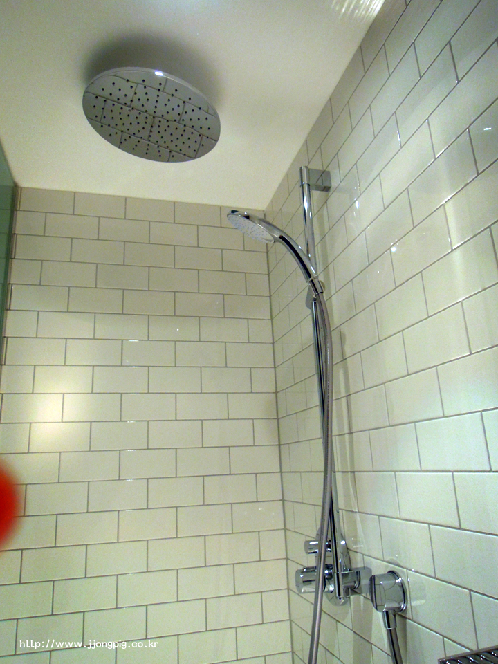 욕실은 미닫이 방식으로 문을 열고 들어가면 샤워부스가 있는 형태였다.