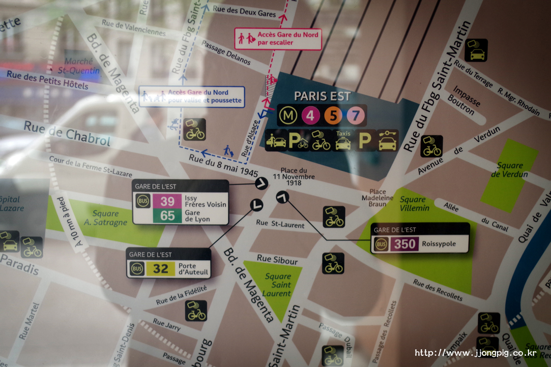 - 파리 북역에서 동역까지는 도보 10분이면 충분히 이동 가능하다.