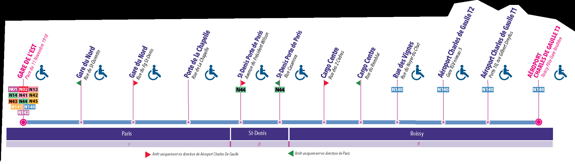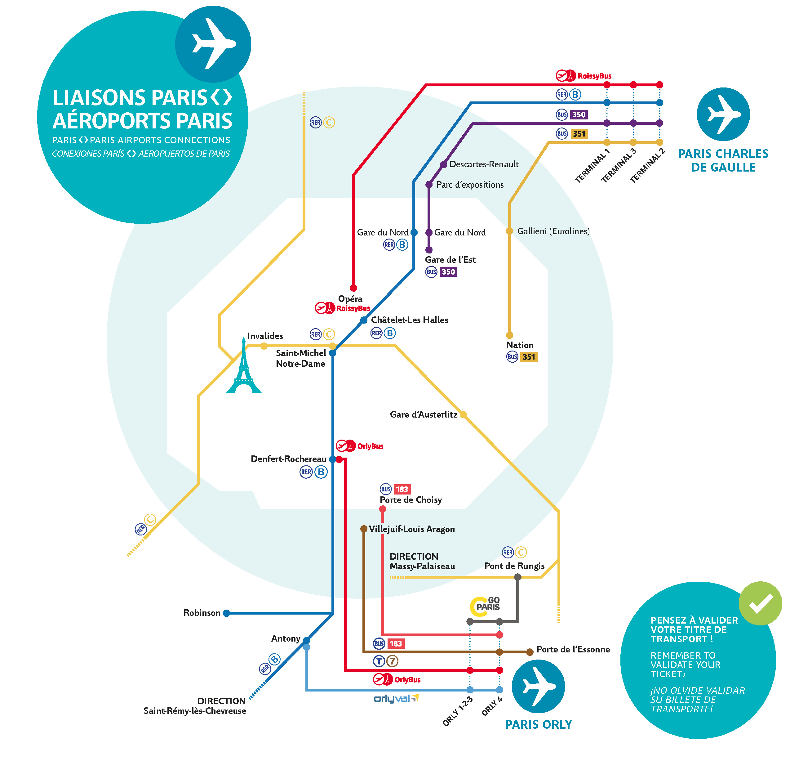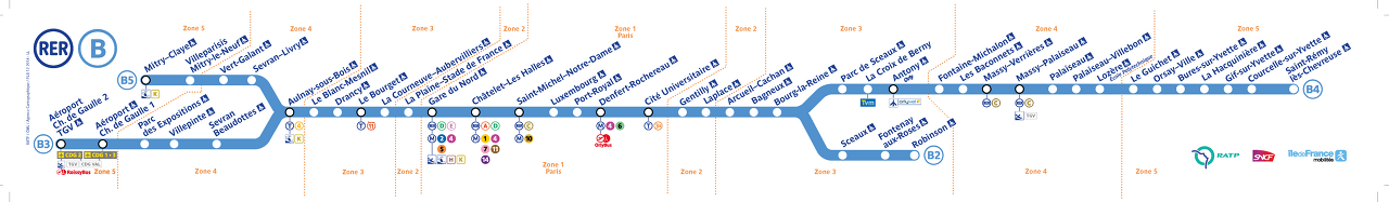 프랑스 철도청에서 운영을 한다. - 파리 샤를드골공항에서는 2터미널에서 출발하여 1터미널을 거쳐 파리 시내로 진입한다. 3터미널 도착시에는 1터미널역 등으로 이동하면 된다. (하단 내용 참고)