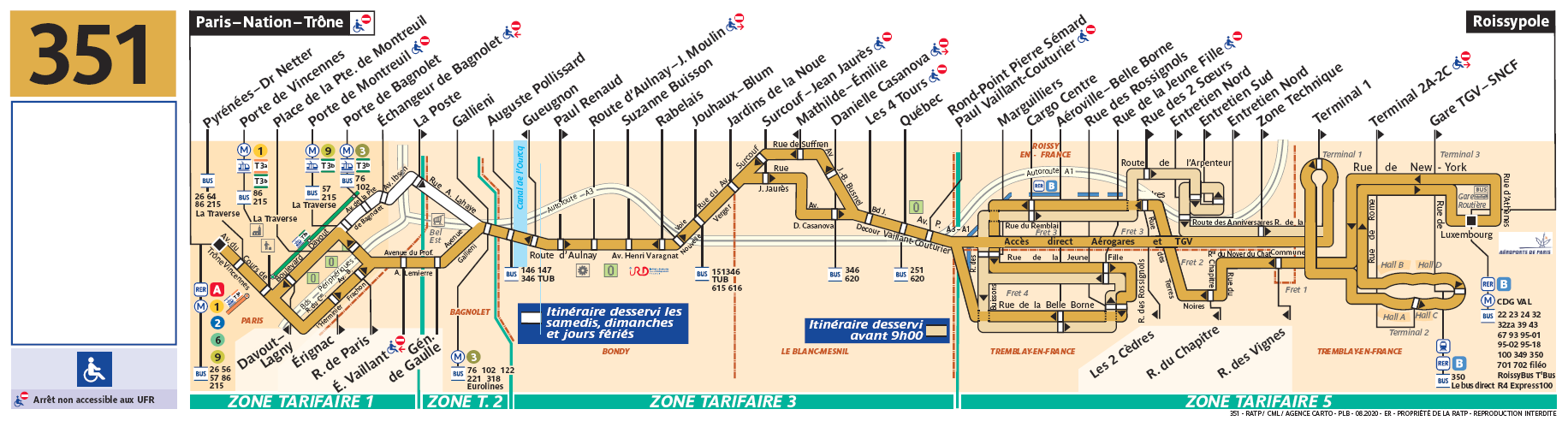 파리의 버스터미널이 있는 Gallieni와 Nation 쪽을 오가는 351번