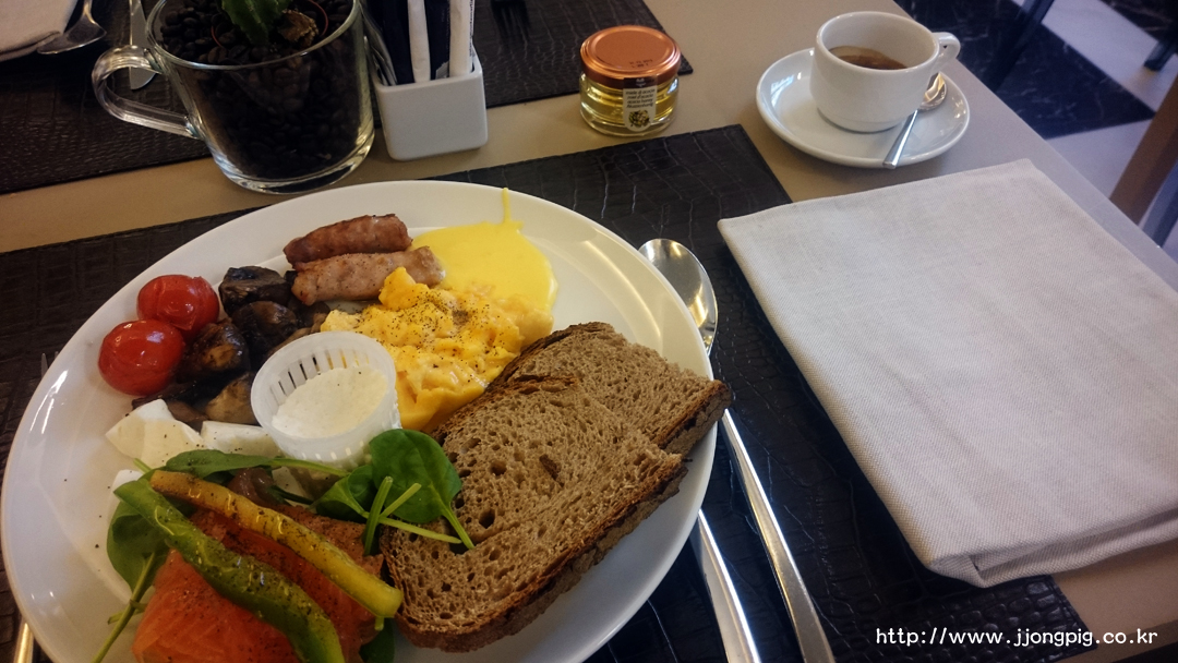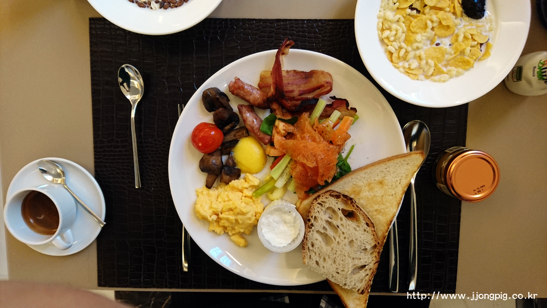 0층에서는 아침식사가 가능하다. 그런데 식당이 크거나 화려한 편은 아니고 안내해주는 분도 2명만 있어서 뭔가 좀 휑한 느낌이 있었는데, 조식을 먹어보니… 재료나 종류 하나하나가 신경쓴게 많이 보인다. 시리얼 부터 시작해서 치즈도 그렇고 꿀, 디저트 등 일반 호텔에서 접하는것들보다는 훨씬더 고퀄리티로 제공이 된다. 사실 이거를 식사하고 있는데 친절하게 알려줘서 나도 관심 갖게 된건데, 모르고 지나치면 평범하게 보일 수도 있을 것 같다.
