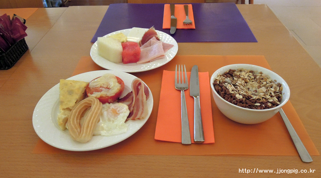 조식은 1층에서 식사를 하게 되는데, 생각보다 메뉴는 적당히 있고, 식당도 규모가 작은편이라 그룹팀이 몰릴때에는 좀 번잡한 느낌도 있다.
