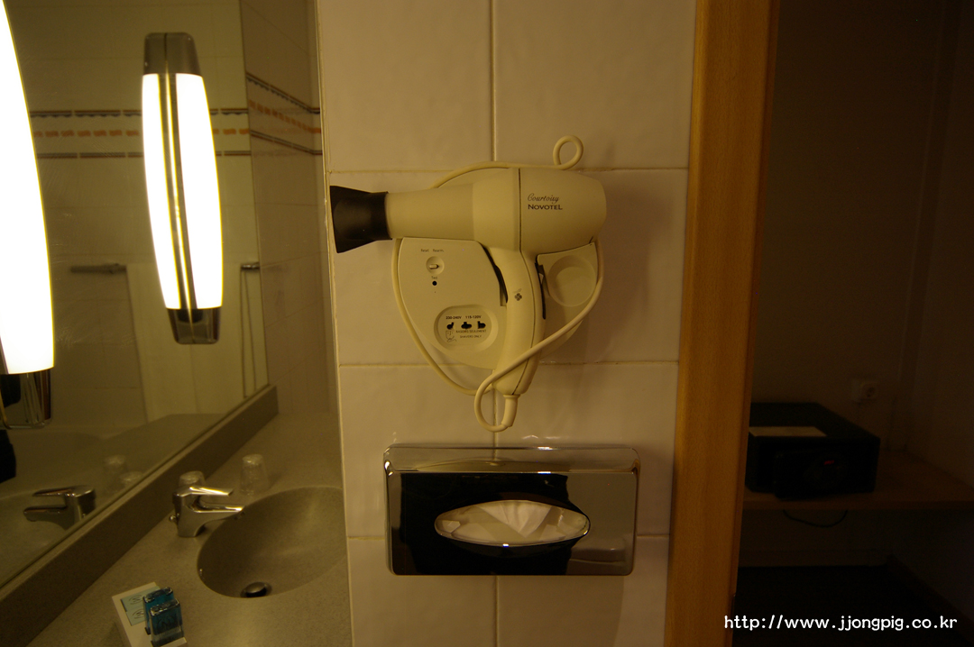 노보텔의 욕실은 세면대부터 노보텔 특유의 일체형? 구조에 깔끔하게 구성되어 있어서 깔끔하다. 그리고 노보텔 호텔 어디를 가든 저 헤어드라이어는 참 괜찮은것 같다. -.-aa