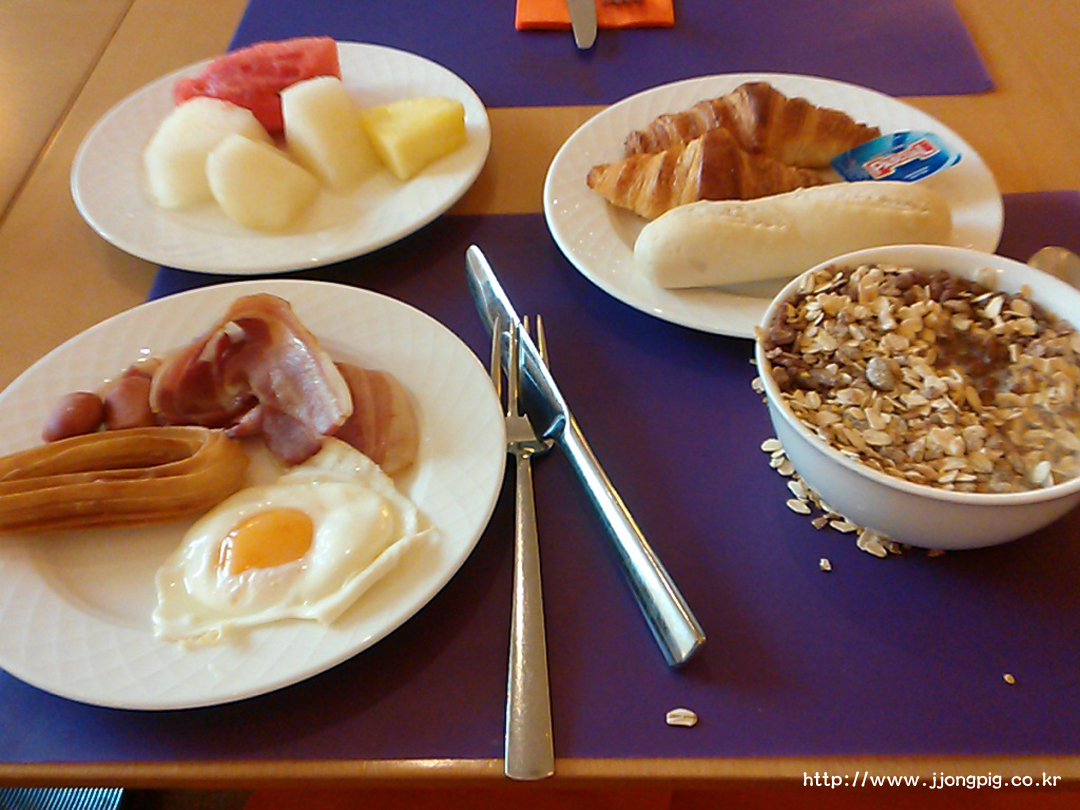 조식은 1층에서 식사를 하게 되는데, 생각보다 메뉴는 적당히 있고, 식당도 규모가 작은편이라 그룹팀이 몰릴때에는 좀 번잡한 느낌도 있다.