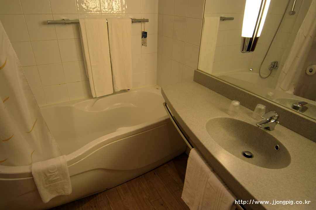 노보텔의 욕실은 세면대부터 노보텔 특유의 일체형? 구조에 깔끔하게 구성되어 있어서 깔끔하다. 그리고 노보텔 호텔 어디를 가든 저 헤어드라이어는 참 괜찮은것 같다. -.-aa