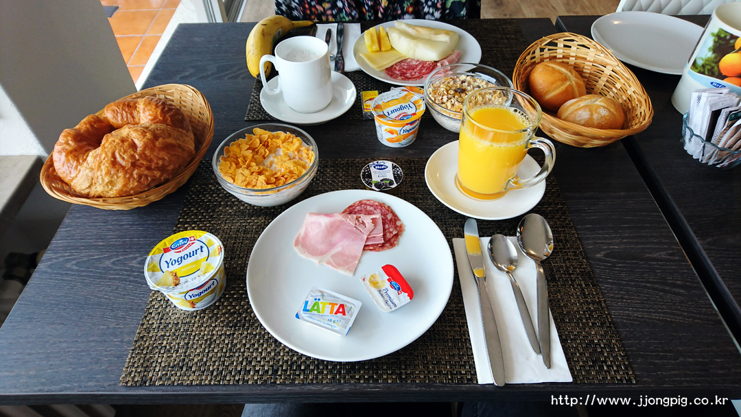 조식은 컨티넨탈 식으로 제공이 된다. 3성급에 딱 맞는 스타일.