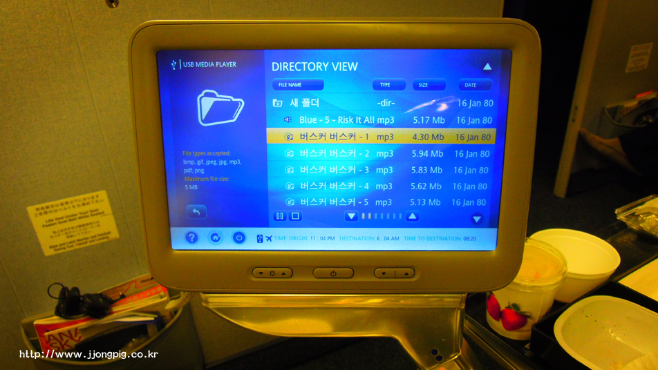 기종은 Boeing 777-300ER 이었는데, 당시에는 한국어 서비스는 없었다. 하지만 컨텐츠는 생각보다 꽤 충실했다. 하지만 너무 피곤했던 나머지 기내식을 먹을때 빼놓고는 세상모르게 잤던것 같다. -.-