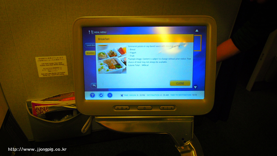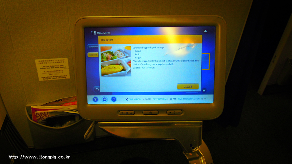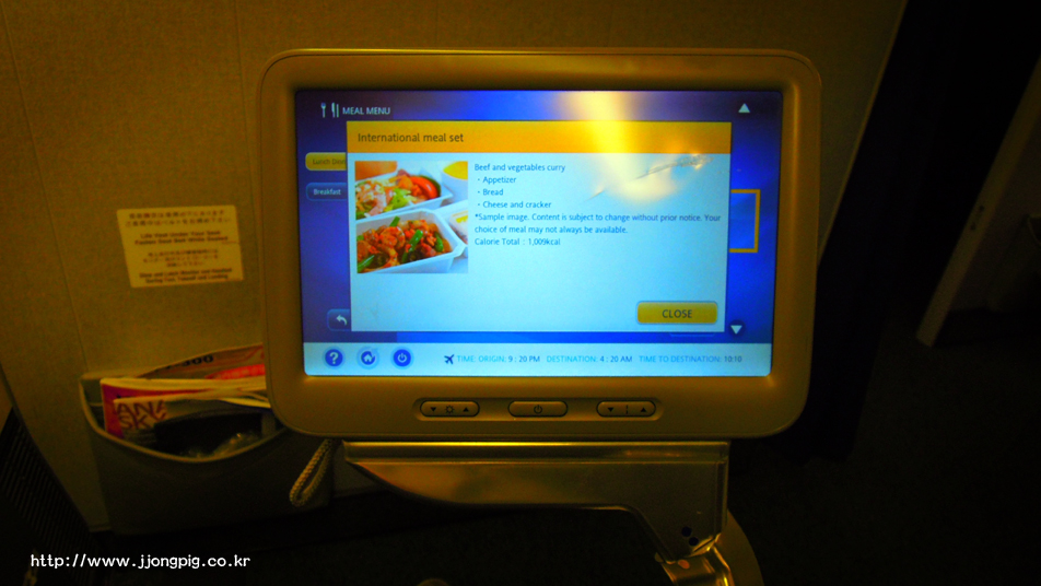 기종은 Boeing 777-300ER 이었는데, 당시에는 한국어 서비스는 없었다. 하지만 컨텐츠는 생각보다 꽤 충실했다. 하지만 너무 피곤했던 나머지 기내식을 먹을때 빼놓고는 세상모르게 잤던것 같다. -.-
