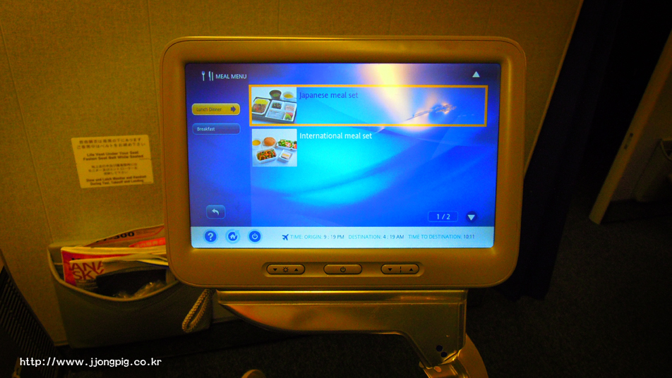 기내식을 고르게 할 때는 메뉴판을 직접 제공해주는데, 사진이 있는 메뉴판이다보니 메뉴선택이 매우 편리했다. 이런 방식은 일본에서 쉽게 접하는 문화같다.