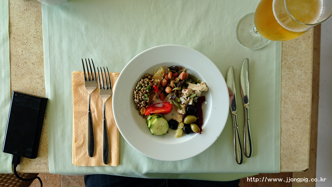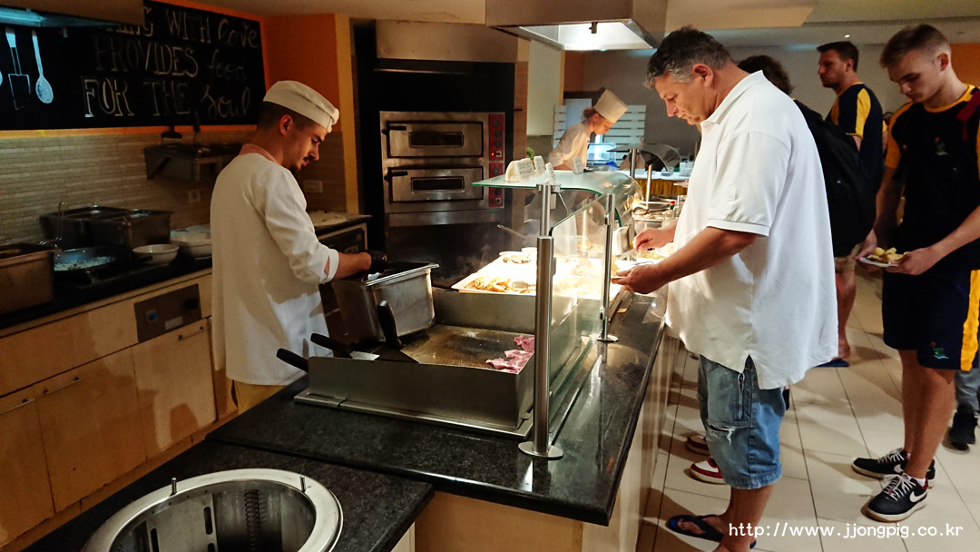 식사시간에 음료는 무제한으로 제공이 된다. 저녁에는 생맥주와 와인이 무제한으로 제공되는데, 피맥 즐기기도 충분할 것 같다. 가끔 조식때 오렌지쥬스를 생으로 직접 만들어 줄 때도 있다.