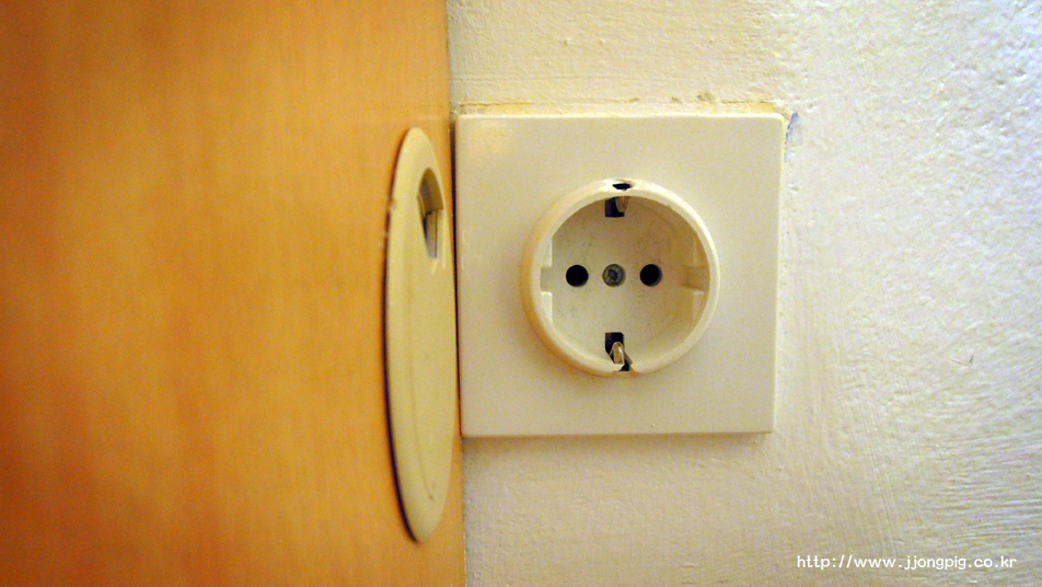 간단한 물품들을 놓을 수 있는 고정 테이블과 원형테이블이 있고, 주변에 플러그도 여유있게 사용가능하다.